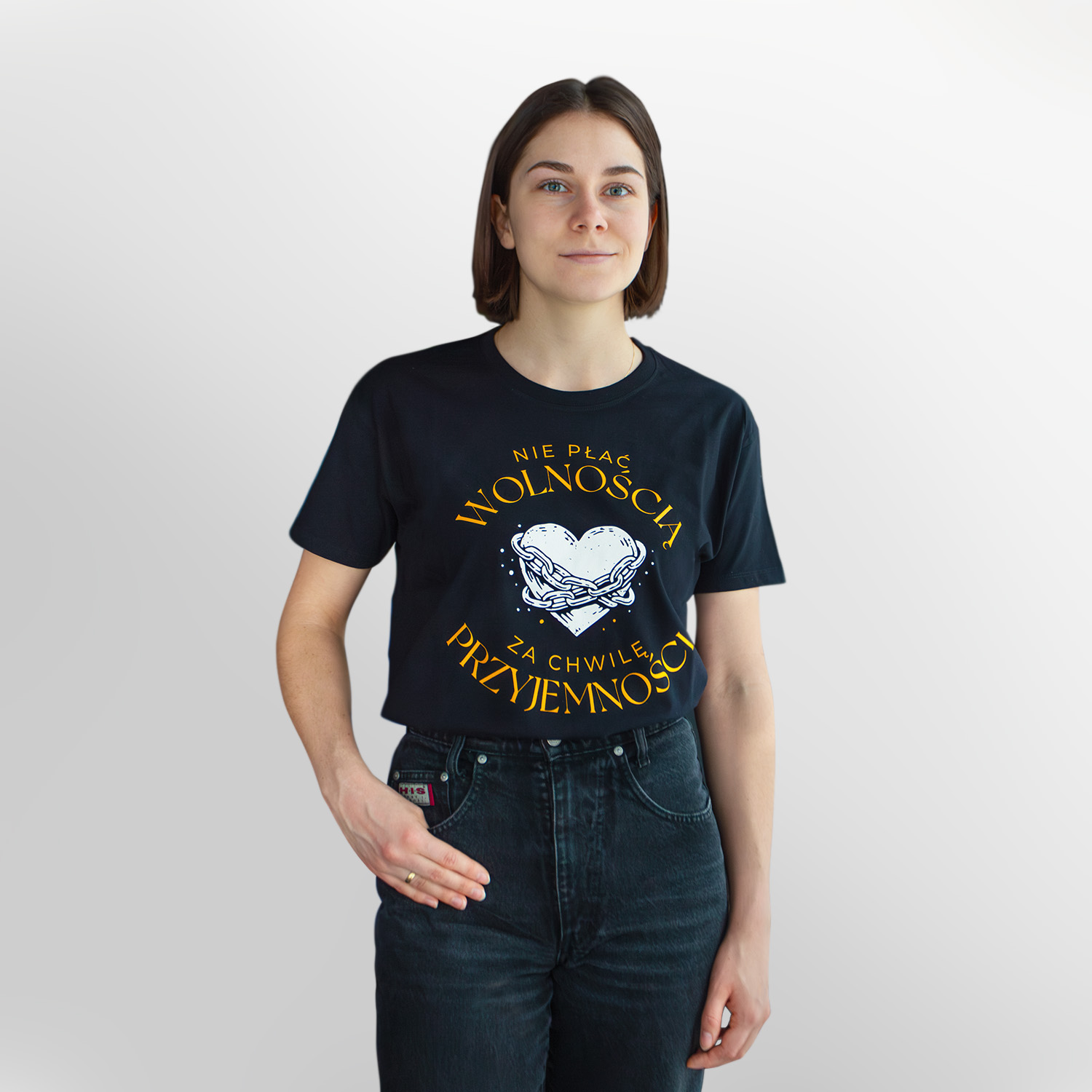 T-shirt Drugi Krok z napisem "Nie płać wolnością za chwilę przyjemności"