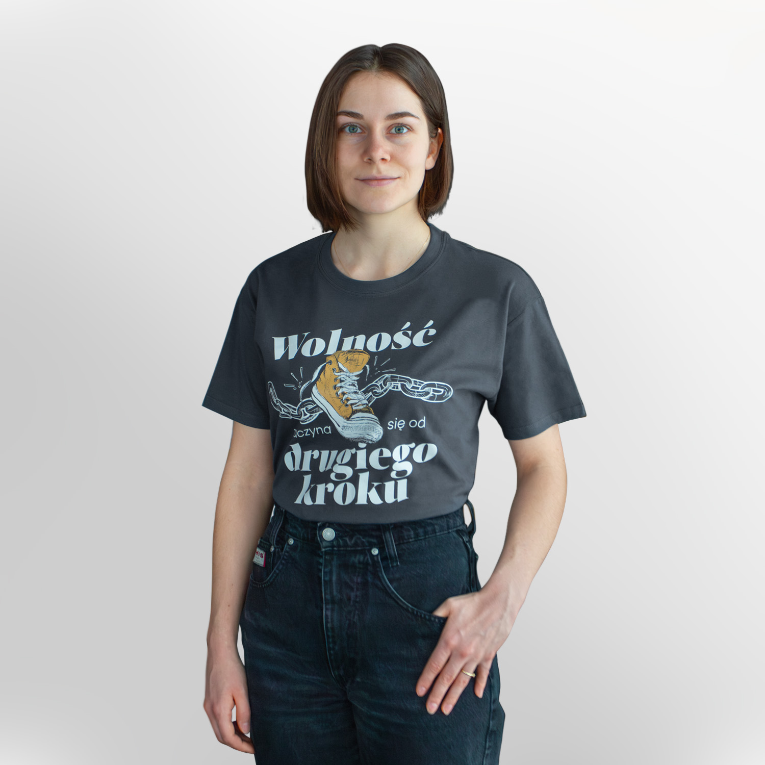 T-shirt Drugi Krok z napisem "Wolność zaczyna się od drugiego kroku"